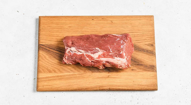 Заранее достаньте охлажденную говяжью вырезку из холодильника, чтобы мясо успело согреться до комнатной температуры не только снаружи, но и внутри. Внимательно осмотрите отруб со всех сторон, срежьте пленки и заветренные места, если такие имеются.