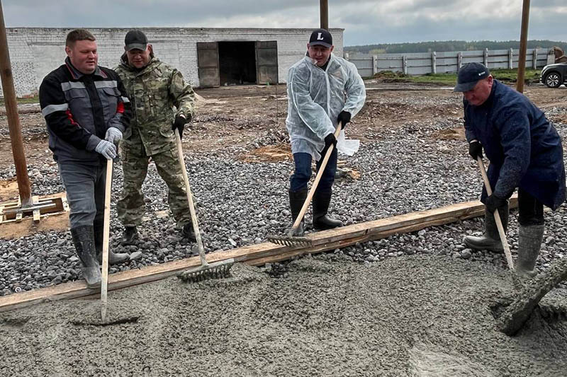 – Огромную спонсорскую помощь оказывает Рогачёвский молочно-консервный комбинат,– отметил Максим Сергеевич. – Сегодня на республиканском субботнике трудились порядка 25 человек, в том числе и генеральный директор Рогачевского МКК Владимир Луцкий. Были проведены работы по монтажу металлических конструкций железобетонных столбов, по покраске животноводческих объектов, ворот, побелки сараев, а также бетонированию площадки под профилакторий.