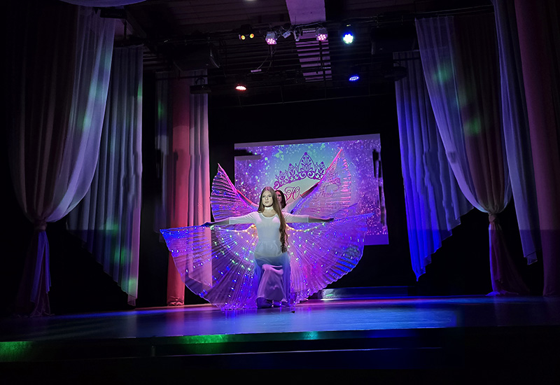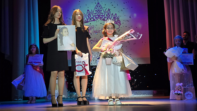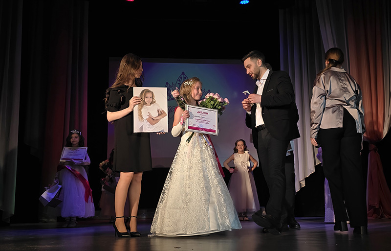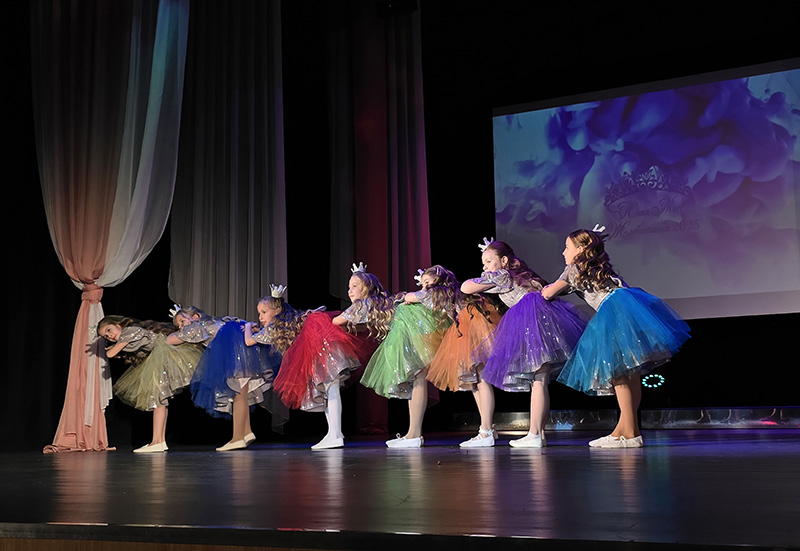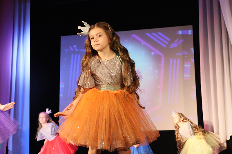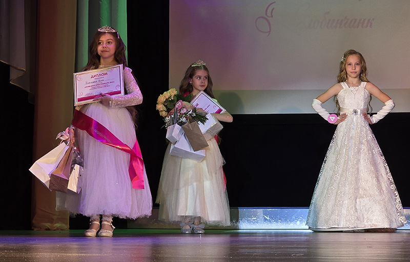 А завершилось мероприятие двумя яркими номерами. Сначала юные артистки вышли на сцену и показали зрителям хореографическое мастерство. Далее последовало финальное дефиле юных принцесс в роскошных вечерних платьях.