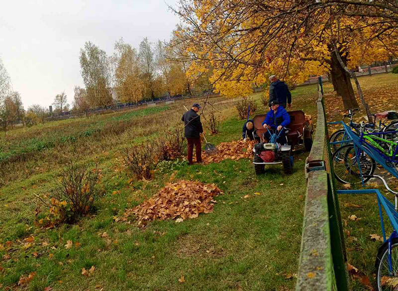 Осень ворвалась в нашу жизнь и засыпает улицы, парки, дворы яркими краскам листвы. На календаре – пятница, а значит по доброй традиции жители сельских населённых пунктов, вооружившись граблями и лопатами, вышли на уборку листвы, перекопку клумб, ремонт малых архитектурных форм. Листопад не даёт пока нам всем отдыхать, но как ни крути, а порядок нужно навести в каждом дворе, на каждой улице, в каждом населённом пункте.