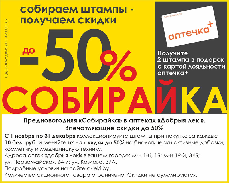Предновогодняя «Собирайка» в аптеках “Добрыя лекі”: впечатляющие скидки до 50%