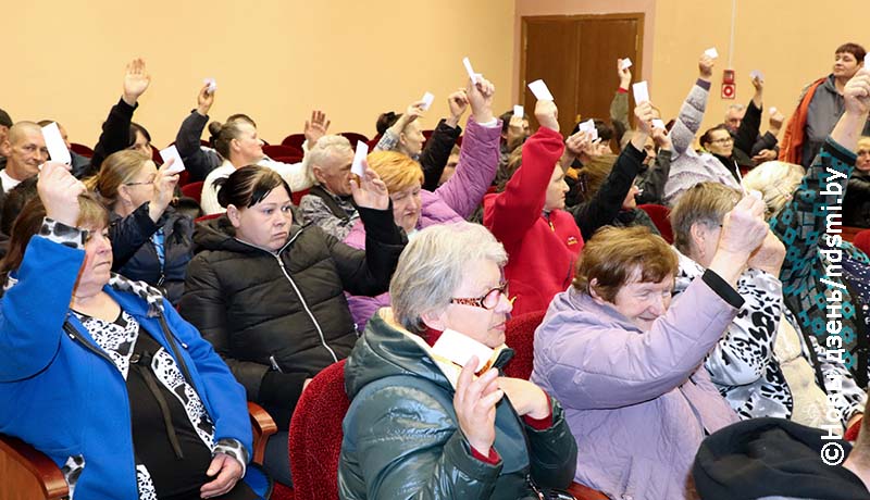 Открыла собрание председатель профкома сельхозпредприятия Наталья Сазончик. Она же выступила с отчётом о проделанной профкомом работе за последние пять лет. Наталья Васильевна, в частности, отметила, что коллективный договор соблюдался всеми сторонами. Собрание одобрило отчёт.