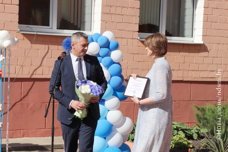 Право открыть линейку и поднять Государственный флаг было предоставлено победителям областного этапа республиканской олимпиады Юрию Гороху и Анастасии Ковалёвой.