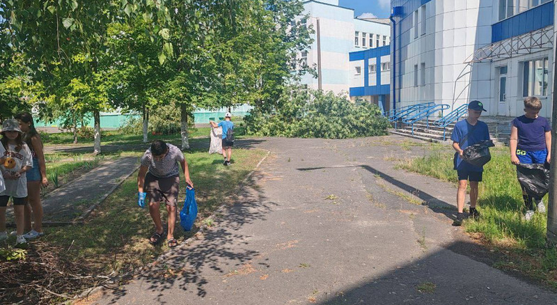 Уборка территории от последствий стихии в Жлобине продолжается. К ней подключились волонтерские отряды, медицинские работники, школьники и даже малыши в детских садах.