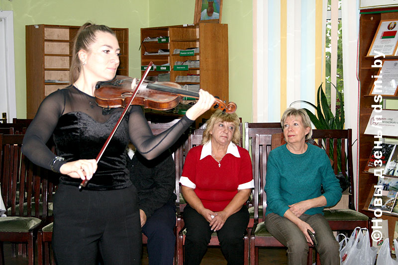 Начался праздничный вечер с музыкального поздравления – учитель ДШИ № 1 Анастасия Бодиловская исполнила на скрипке композицию «Беловежская пуща».