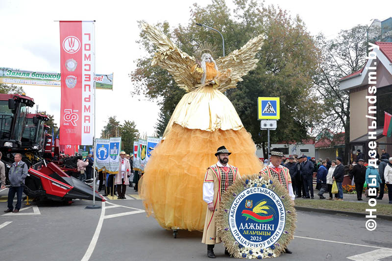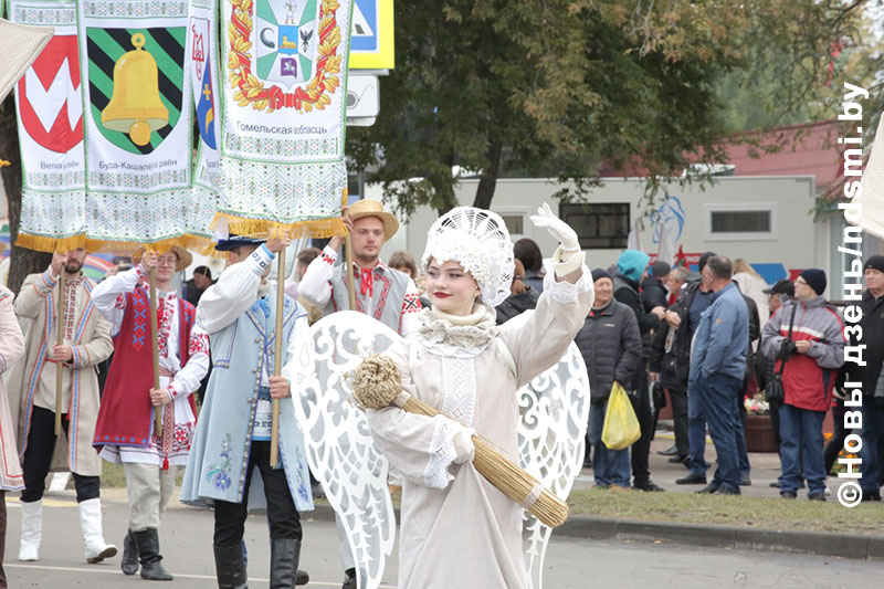 На проходящем сегодня, 3 октября, в районном центре Лельчицы областном фестивале тружеников села «Дажынкі-2025» состоялось праздничное шествие героев жатвы региона.