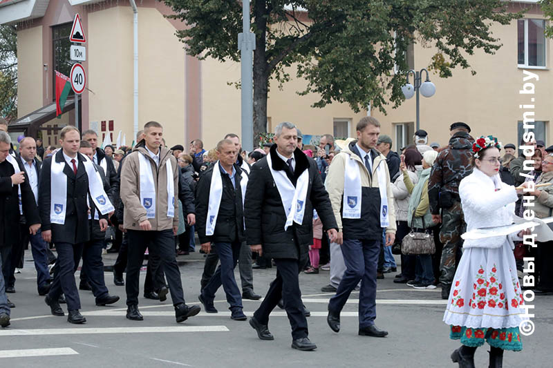 По центральной улице Лельчиц прошествовали и жлобинчане во главе с председателем райисполкома Сергеем Ярцем. В праздничной колонне также – отличившиеся на жатве комбайнеры, руководители лучших сельхозпредприятий нашего района. Мы гордимся земляками! Хвала рукам, что пахнут хлебом!