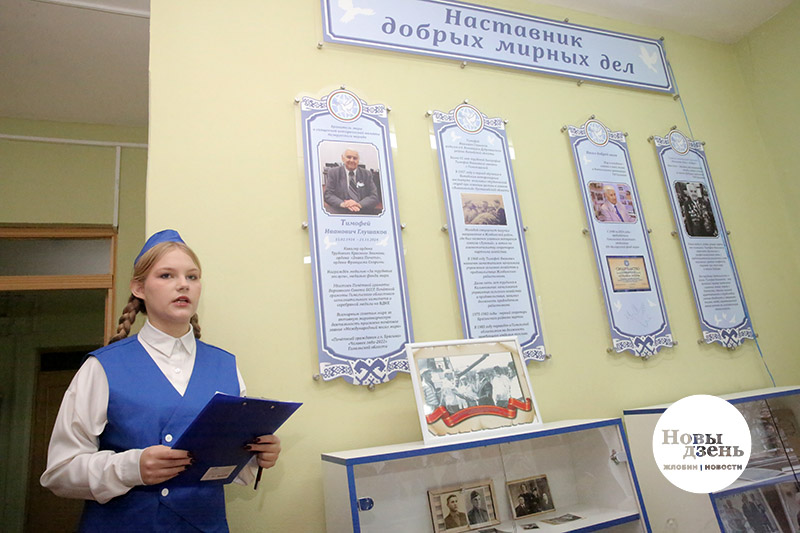 Волнительным стал день для коллектива школы и ребят ещё по одной причине. Здесь открыта музейная экспозиция «Наставник мирных добрых дел», посвящённая жизненному и трудовому пути выдающегося миротворца. Коллеги-миротворцы, родные и близкие, общественники стали почётными гостями на этом мероприятии. После трогательных музыкальных номеров председатель Жлобинского районного Совета депутатов Валентина Нехай приветствовала всех собравшихся на открытии экспозиции.