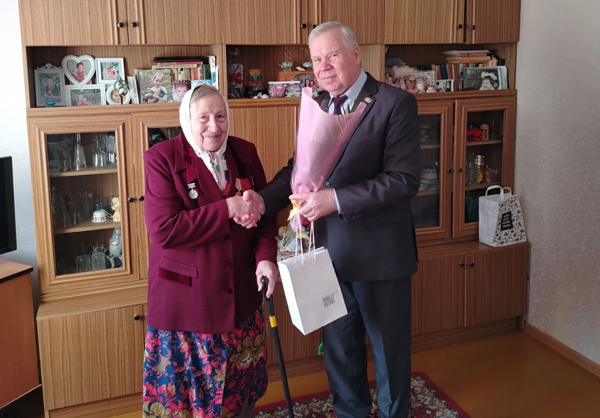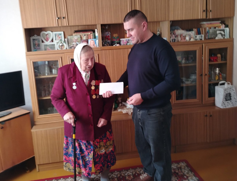 В рамках республиканской благотворительной акции «От всей души» председатель Жлобинского районного Совета ветеранов Михаил Косюков, председатель профкома ГП «Жлобинская ПМС» Виктор Синицкий поздравили с 90-летием Наталью Ивановну Федчук.