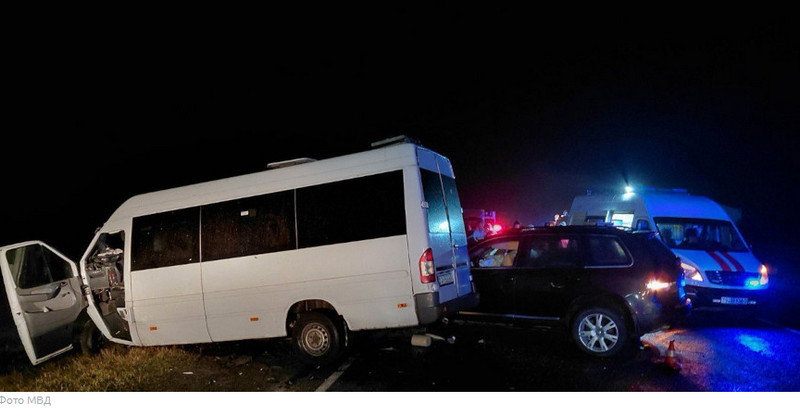 "Водитель маршрутного такси Mercedes 1979 года рождения совершил попутное столкновение с трактором, который двигался в составе с полуприцепом. После этого он не справился с управлением и выехал на полосу встречного движения, где столкнулся с автомобилем Volkswagen. По уточненной информации, в ДТП погибли шесть пассажиров. Два водителя и шесть пассажиров получили телесные повреждения", - сообщил Виктор Ротченков.