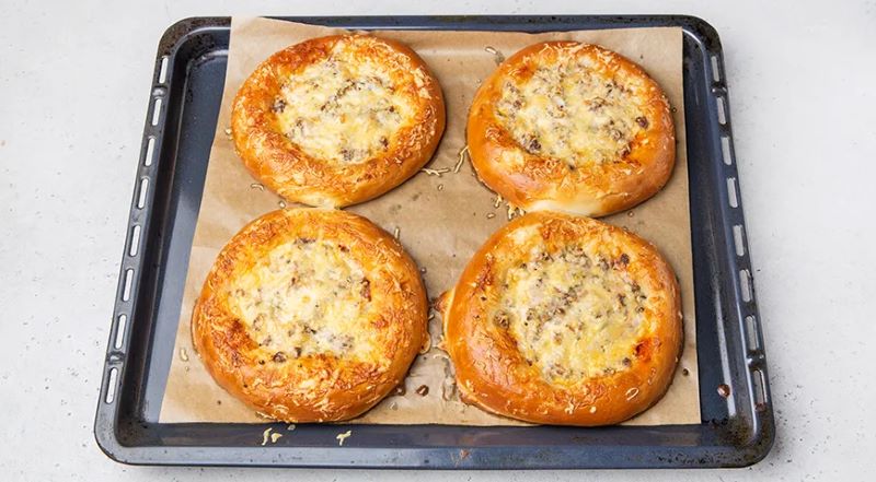 Выпекайте белорусские смаженки с фаршем около 25 минут. Они должны хорошо подрумяниться. Выньте противень из духовки, дайте смаженкам немного остыть и подавайте.