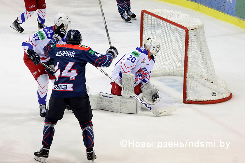 Счет на ледовой арене Жлобина на 9-й минуте открыли «стальные волки». Отличился Игорь Козячий.