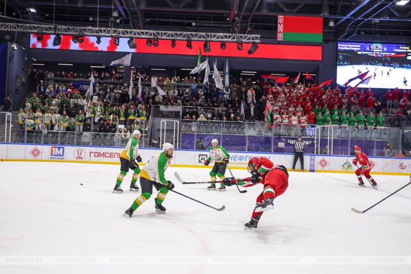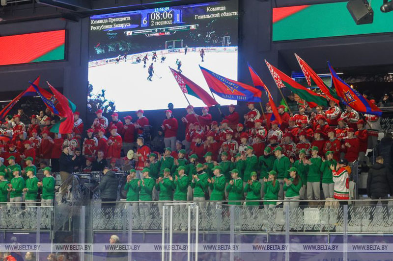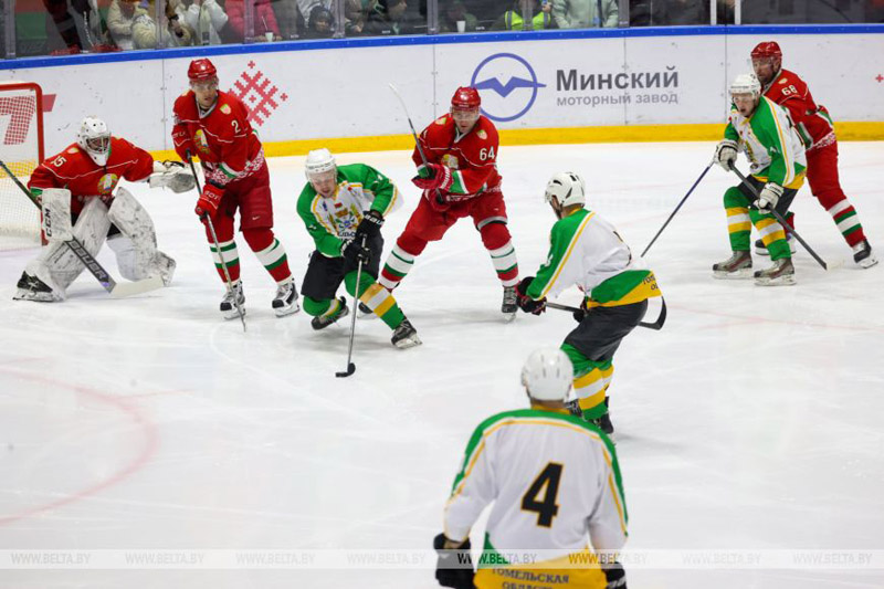 Сегодня на льду "Олимпик-Арены" в Минске дружина главы государства переиграла команду Гомельской области со счетом 12:2 (4:0, 4:1, 4:1).