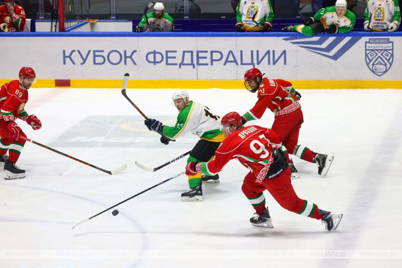 В стартовом поединке нового сезона команда Президента победила соперников из Могилевской области со счетом 9:3, а затем сыграла вничью с хоккеистами Брестского региона - 5:5.