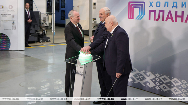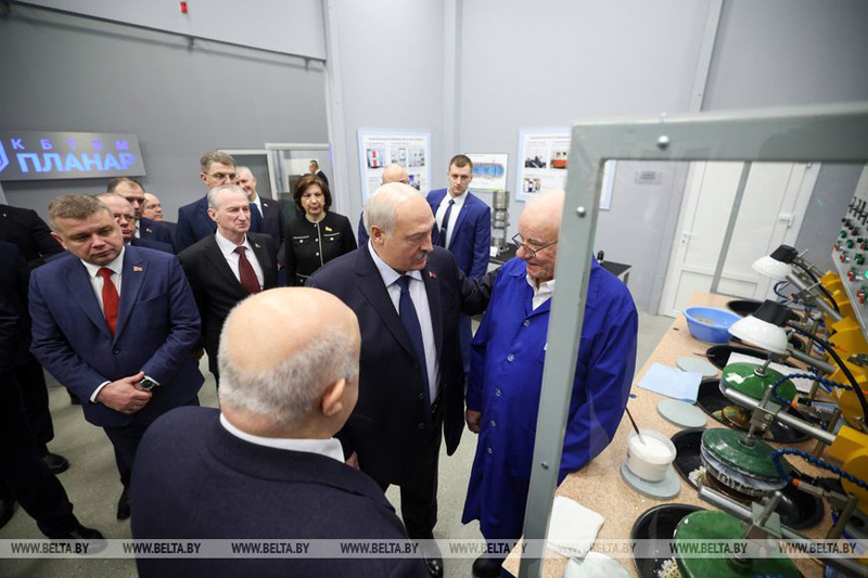 Президент Беларуси Александр Лукашенко в Минске при посещении ОАО "Планар" принял участие в церемонии запуска Центра спецтехнологического оборудования для производства фотошаблонов и микрооптики, передает корреспондент БЕЛТА.