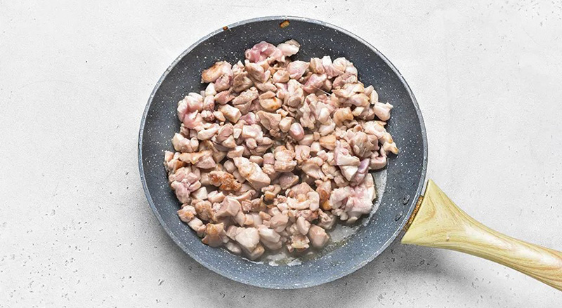 В сковороду, в которой жарился лук, добавьте нарезанную курицу. Если масла осталось мало, добавьте еще немного. Жарьте, часто перемешивая 5 минут. Кусочки должны хорошо подрумяниться.