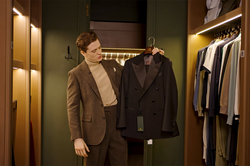 Самый формальный вариант — вечернее мероприятие. Классические смокинги (однобортные и двубортные) с правильной шириной лацкана, правильной длиной пиджака и брюками с высокой талией — это хорошо. Но для оценки «отлично» стилист предлагает вечерние пиджаки из бархата.
