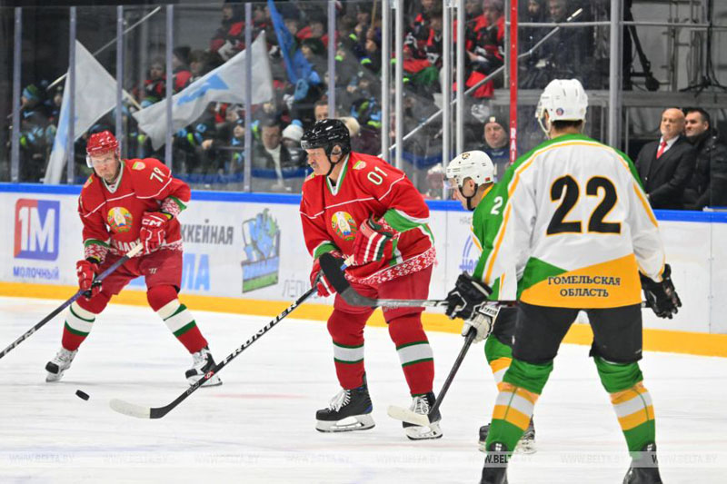 Сегодня на льду "Олимпик-Арены" в Минске дружина главы государства переиграла команду Гомельской области со счетом 12:2 (4:0, 4:1, 4:1).